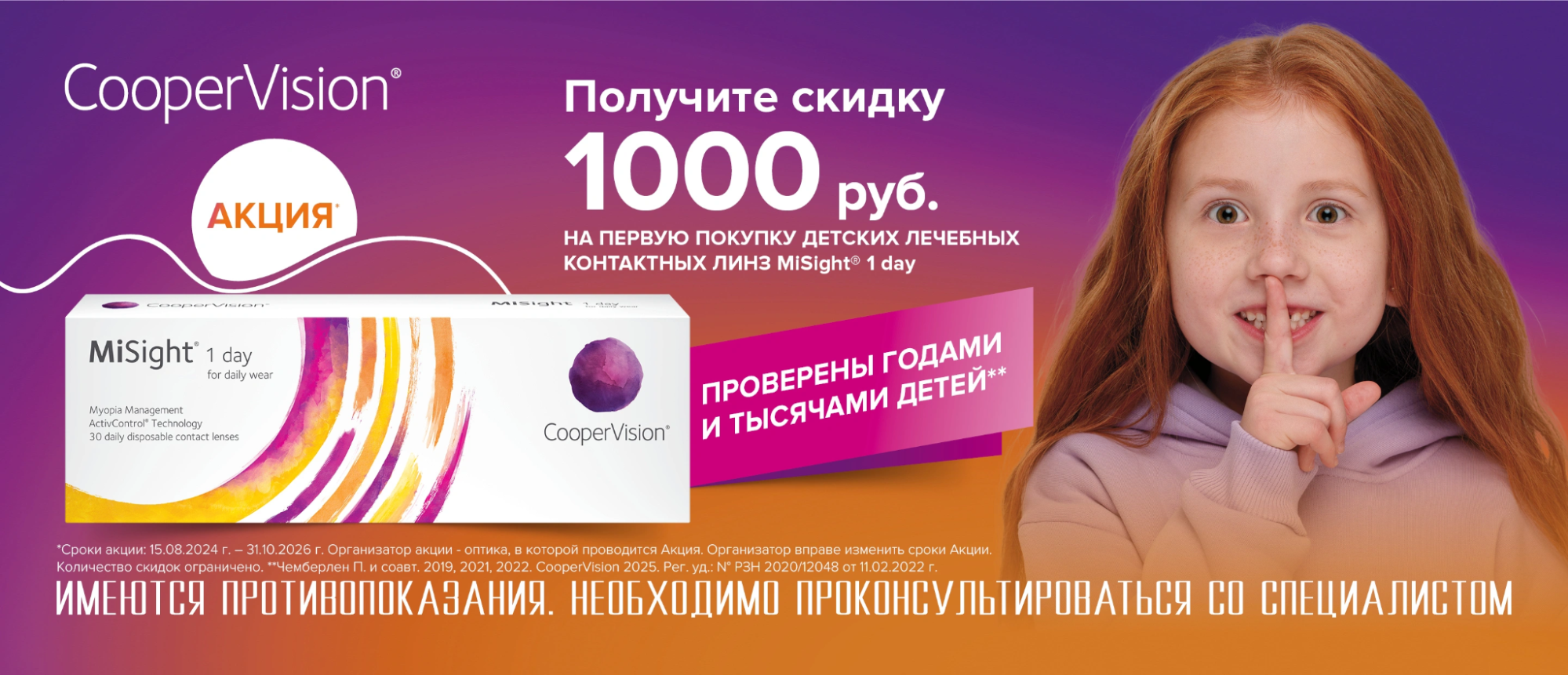 В таких случаях рекомендуются лечебные мягкие контактные линзы для детей MiSight 1day — клинические исследования подтверждают, что они вдвое замедляют прогрессирование близорукости. Чтобы их подобрать, можно записаться к офтальмологу на подбор контактных линз в партнерские оптики CooperVision. Доступны и другие способы коррекции — очки и линзы.
