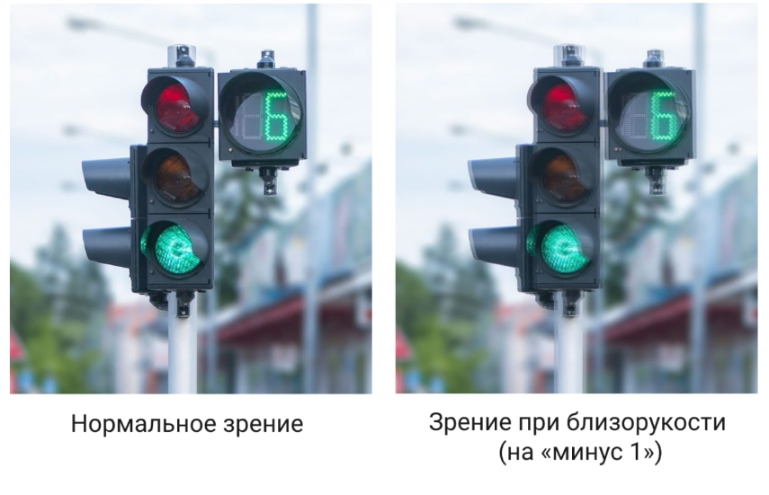 Предметы вдали кажутся размытыми — например, не удается отличить на таймере светофора, горит 6 или 5, но через пару секунд цифра меняется, поэтому большой проблемы в этом обычно не видят. Чаще всего все списывается на усталость глаз — надо меньше сидеть в гаджетах и лучше высыпаться. С последним не поспоришь — но при миопии этого уже недостаточно, даже при минус 1.